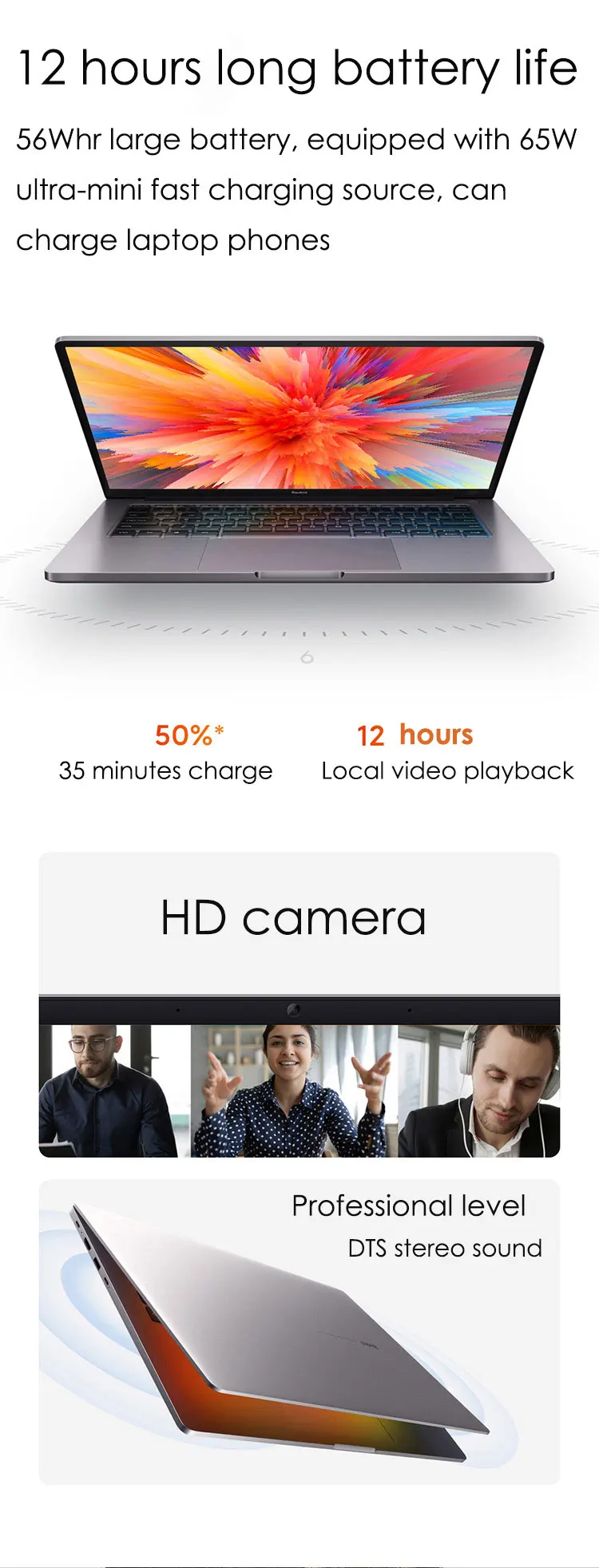 56Wh;100W USB-C power adapter,11.5 hours/12 hours of local video play,Support 1C fast charge, charge up to 50% power in 35 minutes