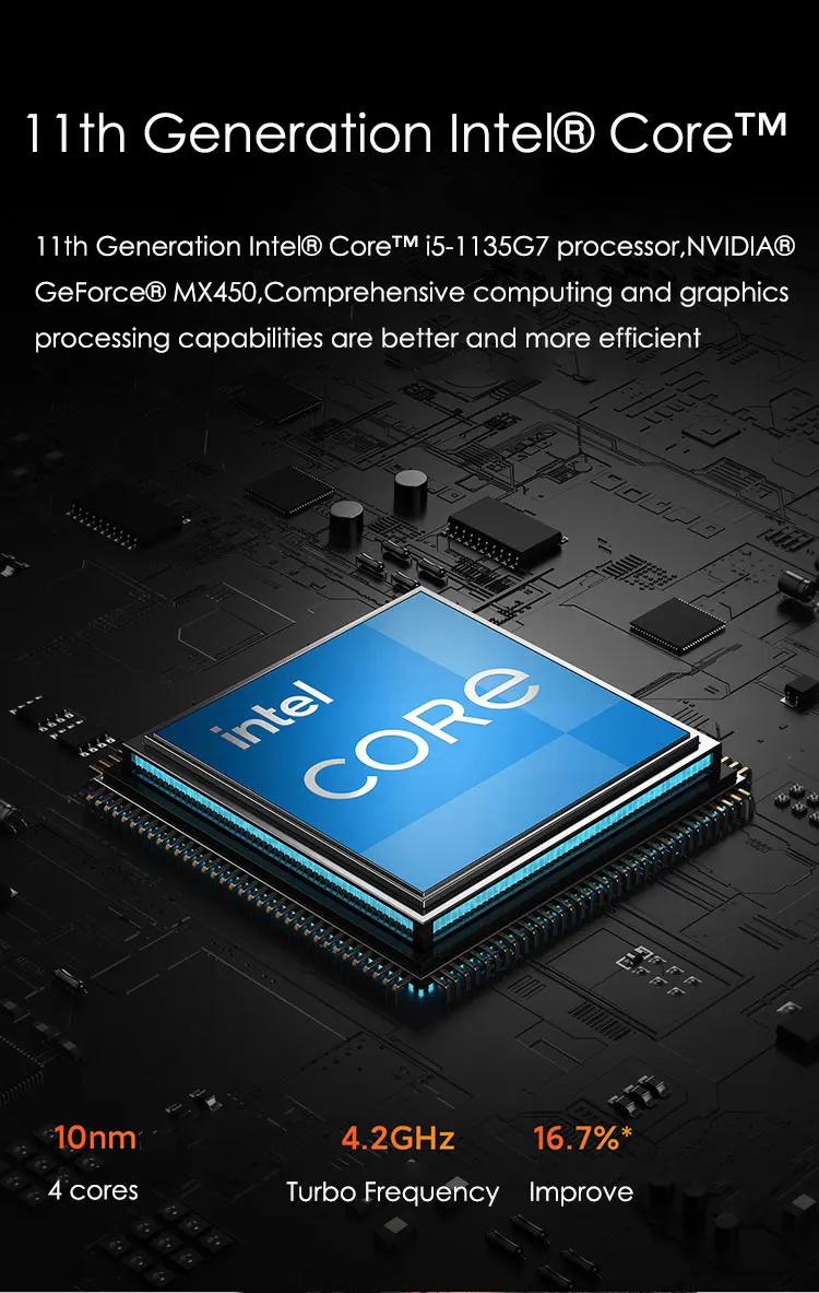 11th Gen Intel®Core™ i5-11300H/i5-11320H processor,Quad core